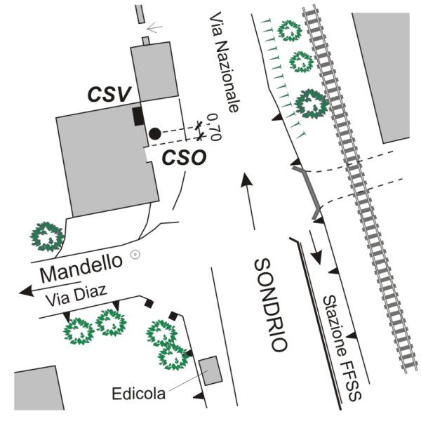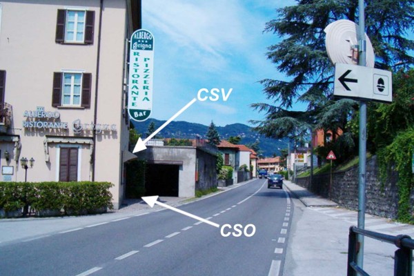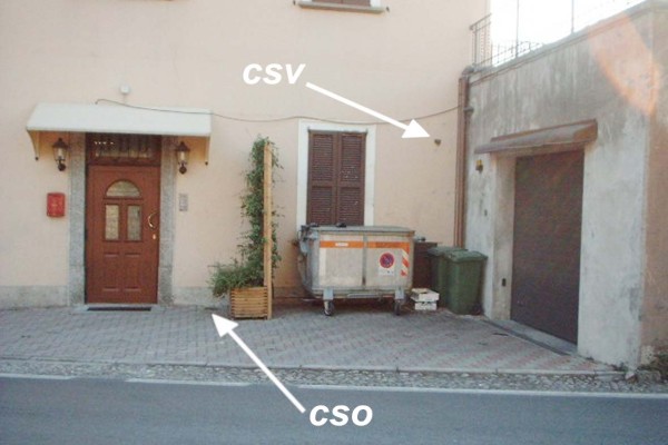 [{"simbolo_contrassegno":"P3","materializzazione":"(CSO) – Chiusino in ghisa situato alla base della facciata verso via Nazionale, a destra della porta dell'albergo Grigna."},{"simbolo_contrassegno":"V1","materializzazione":"(CSV) – Mensola infissa sulla suddetta facciata, spigolo di destra nei pressi della parete del garage."}]