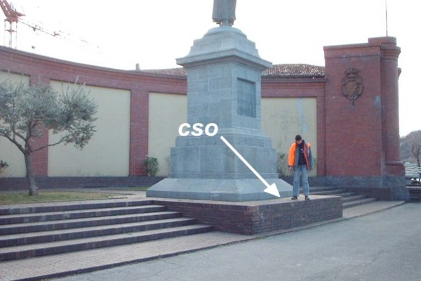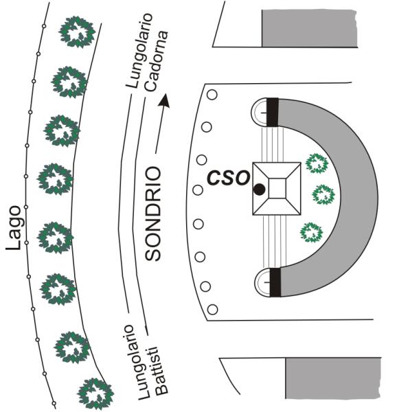 | Contrassegni | [{"simbolo_contrassegno":"B1","materializzazione":"(CSO) – Bullone infisso al centro del muretto di protezione della griglia del tombino."}] |
