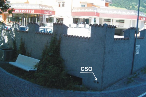 [{"simbolo_contrassegno":"B1","materializzazione":"(CSO) – Bullone infisso nel muro di recinzione dell'Hotel Zentral, in prossimit\u00e0 dello spigolo volto verso Spondigna."},{"simbolo_contrassegno":"V3","materializzazione":"(CSV) – Piastrina antica Austriaca infissa sulla facciata dell'Hotel Zentral, a destra della porta d'ingresso. Attualmente non pi\u00f9 misurabile perch\u00e9 ricoperta dall'isolamento termico dell'edificio. (Ex caposaldo 108P)."}]