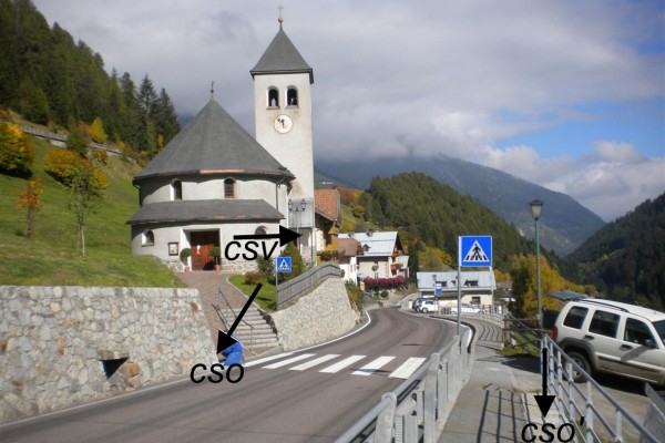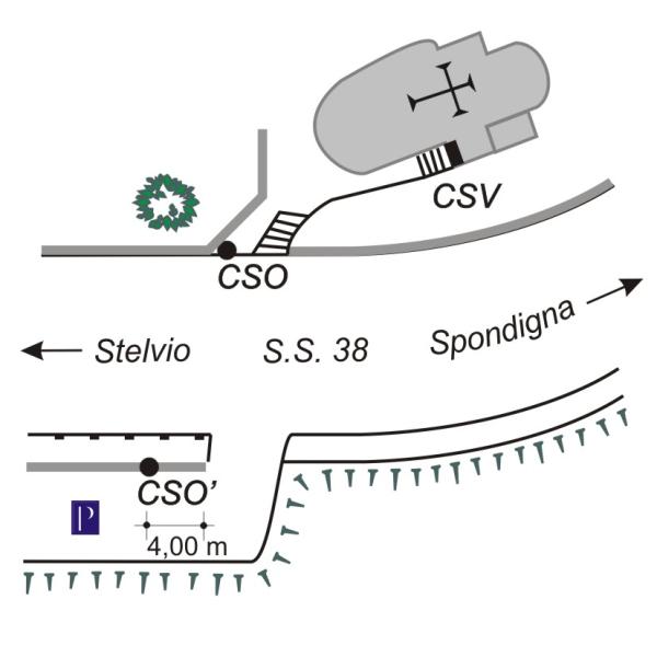 [{"simbolo_contrassegno":"B1","materializzazione":"(CSO) – Bullone infisso nel muro in pietre naturali, a sinistra dell'entrata della Chiesa di Santa Teresa di Gomagoi."},{"simbolo_contrassegno":"B4","materializzazione":"(CSO') – Centrino universale Inox infisso sul muro in cemento armato di sostegno del marciapiede, a valle della strada."},{"simbolo_contrassegno":"V1","materializzazione":"(CSV) – Mensola IGM infissa sulla facciata della Chiesa di Santa Teresa, nell'angolo con la scaletta, a destra della porta d'ingresso."}]