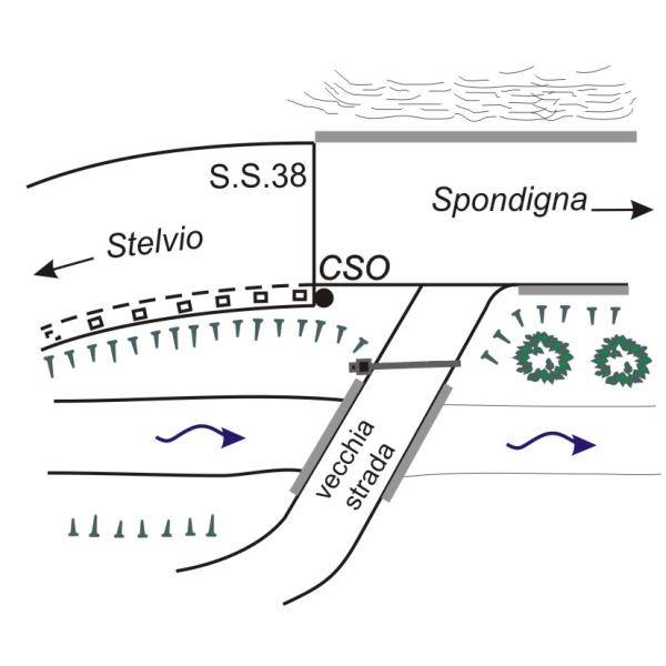 | Contrassegni | [{"simbolo_contrassegno":"B1","materializzazione":"(CSO) – Bullone infisso nella testata del muro in cemento armato posto all'uscita della galleria andando verso lo Stelvio, a valle della strada.."}] |