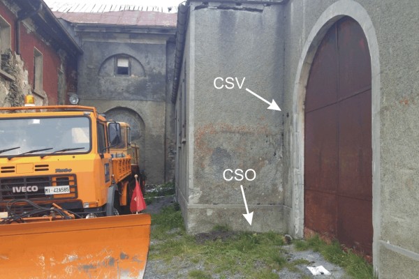 | Contrassegni | [{"simbolo_contrassegno":"P2","materializzazione":"(CSO) – Chiusino in ghisa di II categoria posto alla base della facciata della ex caserma, lato verso la cantoniera, nell'angolo a sinistra del portone."},{"simbolo_contrassegno":"V1","materializzazione":"(CSV) – Mensola infissa sulla facciata della ex caserma, in corrispondenza del CSO."}] |