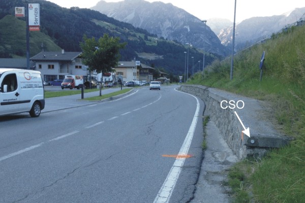 [{"simbolo_contrassegno":"B1","materializzazione":"(CSO) – Bullone infisso sulla testa di un muro in pietra, posto alla base del nuovo tracciato della S.S. 38."}]