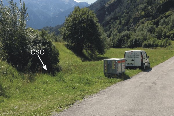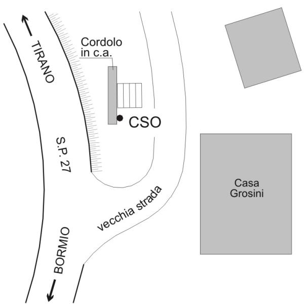 | Contrassegni | [{"simbolo_contrassegno":"B1","materializzazione":"(CSO) – Bullone infisso sul muro in calcestruzzo di un pozzetto di raccolta acque posto di fronte a casa Grosini."}] |