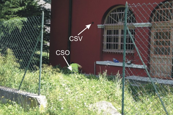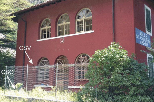 | Contrassegni | [{"simbolo_contrassegno":"P5","materializzazione":"(CSO) – Pozzetto di IV categoria rialzato con tubo in PVC e protetto da tappo in ghisa posto alla base della facciata, a sinistra della porta d'ingresso."},{"simbolo_contrassegno":"V1","materializzazione":"(CSV) – Mensola infissa sulla facciata, in corrispondenza del CSO."}] |