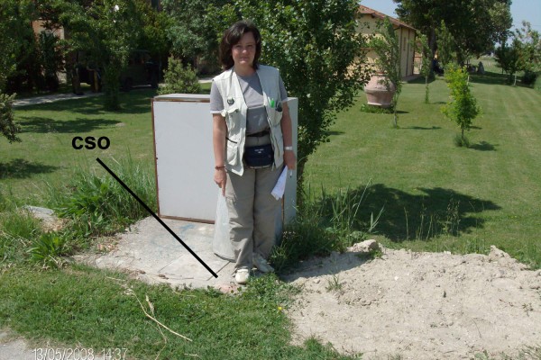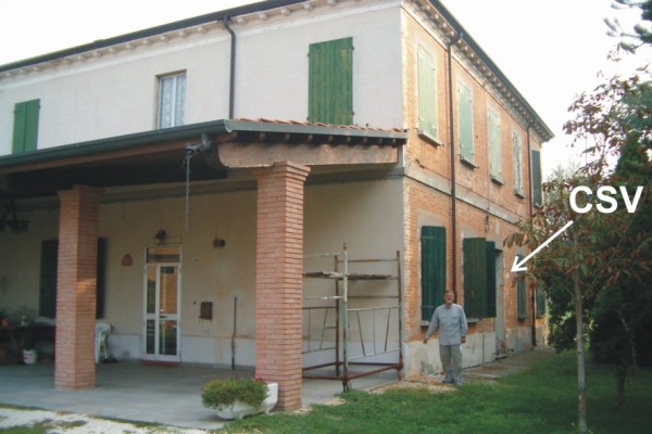 | Contrassegni | [{"simbolo_contrassegno":"B2","materializzazione":"(CSO) – Chiodo anonimo infisso sulla soletta in c.a. di una piccola centralina del gas al margine della strada che conduce all'abitazione al n.civ 358 in via Sant'Alberto"},{"simbolo_contrassegno":"V4","materializzazione":"(CSV) – Piastrina di altro Ente infissa sulla facciata Sud a destra della porta d'ingresso ."}] |
