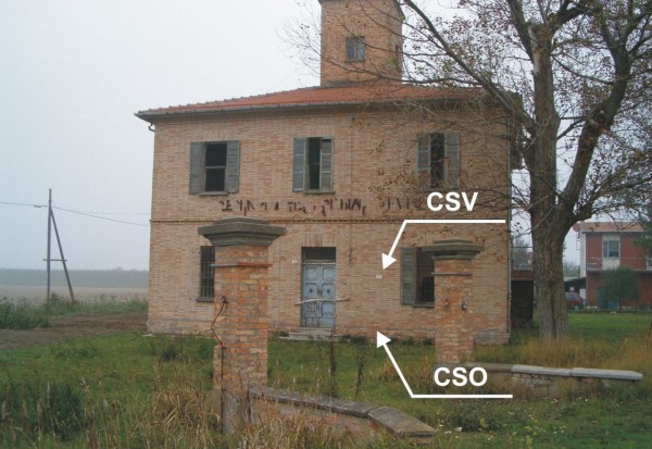 | Contrassegni | [{"simbolo_contrassegno":"B2","materializzazione":"(CSO) – Chiodo anonimo infisso nella risega del muro a metri 2,00 a destra della porta di ingresso (misurabile con semisfera)."},{"simbolo_contrassegno":"V4","materializzazione":"(CSV) – Piastrina con linea incisa di altro Ente posta in corrispondenza del CSO."}] |
