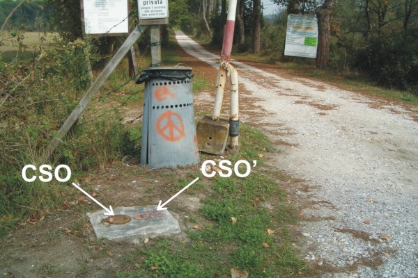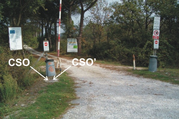 [{"simbolo_contrassegno":"P3","materializzazione":"(CSO) – Chiusino in ghisa di altro Ente posto a sinistra della sbarra di accesso all'Azienda Faunistica Venatoria. Alto non misurato."},{"simbolo_contrassegno":"B2","materializzazione":"(CSO') – Chiodo anonimo infisso sul basamento in calcestruzzo del chiusino."}]