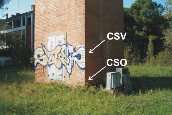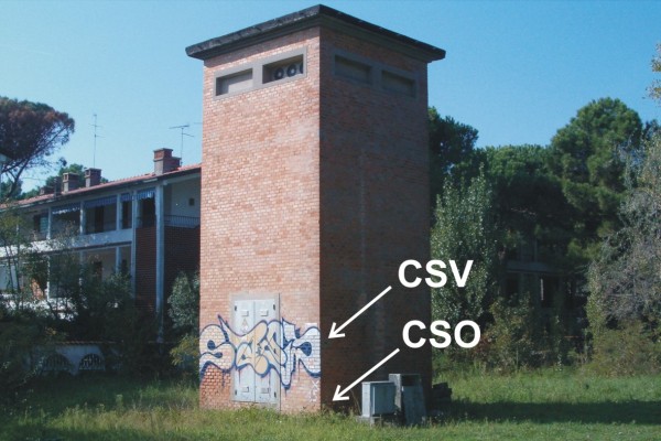 [{"simbolo_contrassegno":"B1","materializzazione":"(CSO) – Bullone di altro Ente (ARPA) infisso nella parete rivolta alla spiaggia della cabina Enel presso lo spigolo sinistro."},{"simbolo_contrassegno":"V4","materializzazione":"(CSV) – Piastrina di altro Ente infissa in corrispondenza del CSO."}]