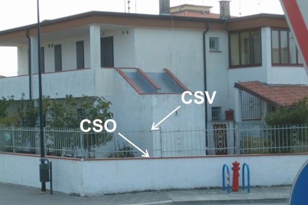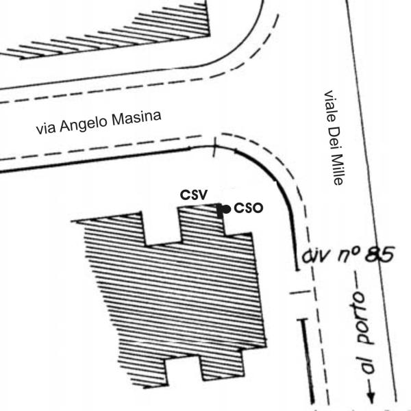 [{"simbolo_contrassegno":"B1","materializzazione":"(CSO) – Bullone di altro Ente (ARPA) infisso presso lo spigolo destro del fabbricato, lato strada."},{"simbolo_contrassegno":"V4","materializzazione":"(CSV) – Piastrina di altro Ente infissa in corrispondenza del CSO."}]
