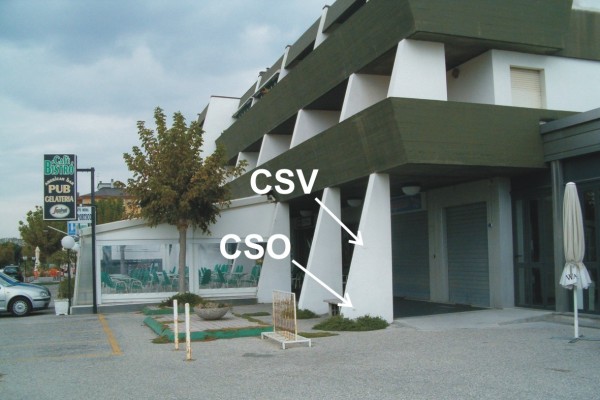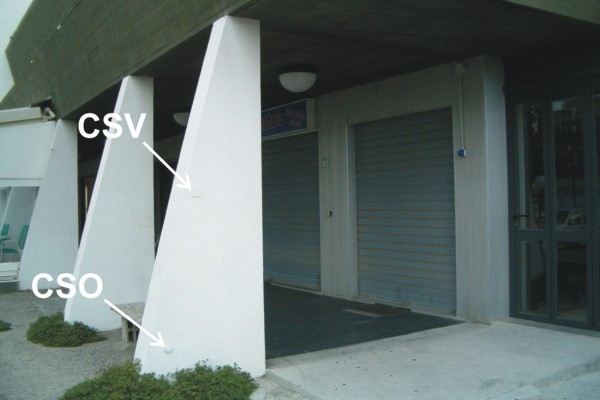 [{"simbolo_contrassegno":"B1","materializzazione":"(CSO) – Bullone di altro Ente (ARPA) infisso nella prima colonna lato mare dell'edificio in Viale Jugoslavia al n.civ. 2."},{"simbolo_contrassegno":"V4","materializzazione":"(CSV) – Piastrina di altro Ente infissa sulla parete della colonna in corrispondenza del CSO."}]
