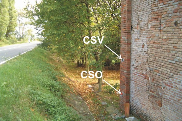 | Contrassegni | [{"simbolo_contrassegno":"B1","materializzazione":"(CSO) – Bullone di altro Ente infisso sulla parete lato strada presso lo spigolo Nord-Est."},{"simbolo_contrassegno":"V4","materializzazione":"(CSV) – Piastrina di altro Ente posta in corrispondenza del CSO."}] |