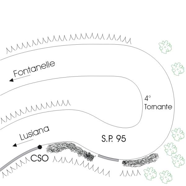 | Contrassegni | [{"simbolo_contrassegno":"B1","materializzazione":"(CSO) – Bullone infisso nella testa rivolta a Fontanelle del muro di sostegno di monte in cemento armato, vicino al tornante n\u00b0 4 della S.P. N\u00b0 95."}] |