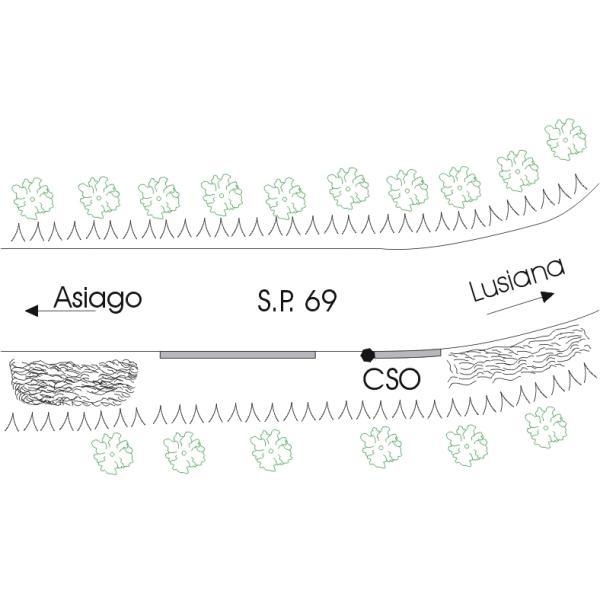[{"simbolo_contrassegno":"B1","materializzazione":"(CSO) – Bullone infisso nella testa rivolta ad Asiago del muro a retta in cemento armato di monte, posto al km 20,880 della S.P. N\u00b0 69."}]