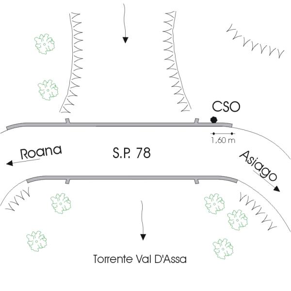 | Contrassegni | [{"simbolo_contrassegno":"B1","materializzazione":"(CSO) – Bullone infisso all' esterno del parapetto in pietra di monte riva sinistra del ponte sul torrente Val d' Assa posto al km 19,650 della S.P. 78."}] |