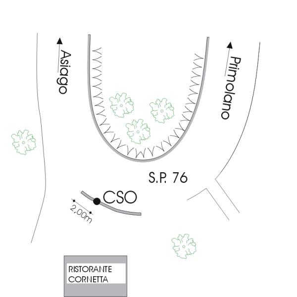 [{"simbolo_contrassegno":"B4","materializzazione":"(CSO) – Centrino universale infisso sulla sommit\u00e0 del cordolo su cui poggia il guard-rail, a valle della strada, prossimo alla testa rivolta verso Asiago, posto di fronte al ristorante Cornetta, al km 25,450."}]