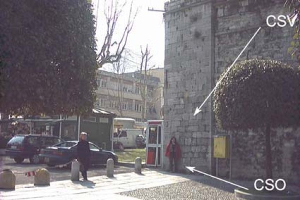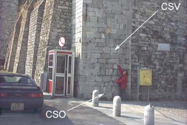 | Contrassegni | [{"simbolo_contrassegno":"B1","materializzazione":"(CSO) – Bulloncino infisso nel bastione, in basso, sulla destra alla fine di Via Volta, uscendo in Via Cattaneo."},{"simbolo_contrassegno":"V4","materializzazione":"(CSV) – Cilindretto di metallo con foro, infisso nello stesso Bastione, sopra il contrassegno orizzontale."}] |