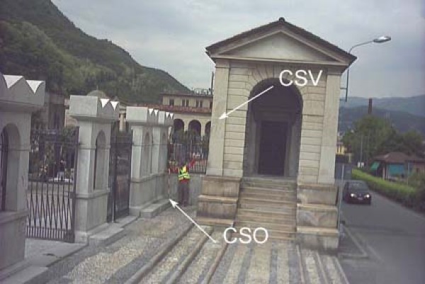 | Contrassegni | [{"simbolo_contrassegno":"V2","materializzazione":"(CSO) – Piastrina a barilotto del tipo per caposaldi verticali, fissata orizzontalmente sul gradino presso l'angolo a destra dei cancelli d'ingresso (coincidente con il CSO n\u00b0 4 della Citt\u00e0 di Como (1928)."},{"simbolo_contrassegno":"B2","materializzazione":"(CSO') – Chiodo anonimo protetto da chiusino in ghisa anonimo posto sulla strada, alla base delle rampe di scale, a sinistra dell'ingresso al cimitero."},{"simbolo_contrassegno":"V4","materializzazione":"(CSV) – Cilindretto di metallo con foro infisso sulla colonna di sinistra, in cima alle scale, della costruzione destinata agli agenti cimiteriali, collocata a destra dei cancelli d'ingresso."}] |