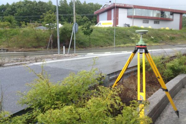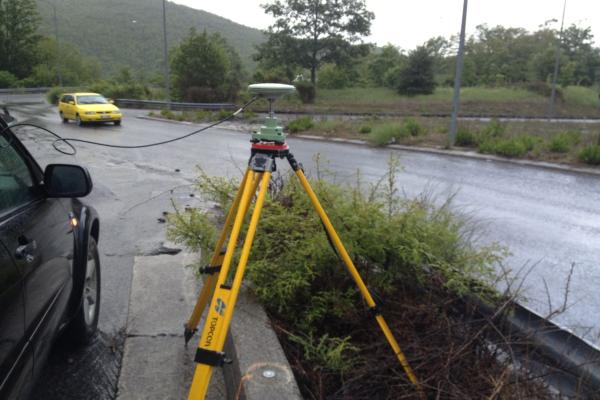 Centrino metallico orizzontale di tipo chiodo con rondella ARPAB Regione Basilicata infisso sulla sommità del cordolo in C.L.S. con zanella stradale.