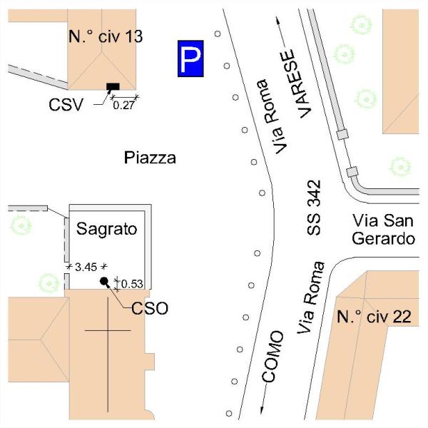 | Contrassegni | [{"simbolo_contrassegno":"P3","materializzazione":"(CSO) – Chiusino in ghisa posto sul sagrato alla base della facciata della Chiesa, dopo la porta secondaria di destra."},{"simbolo_contrassegno":"V1","materializzazione":"(CSV) – Mensola infissa sul fianco laterale di sinistra del fabbricato in fronte alla Chiesa, in prossimit\u00e0 dello spigolo di destra."}] |