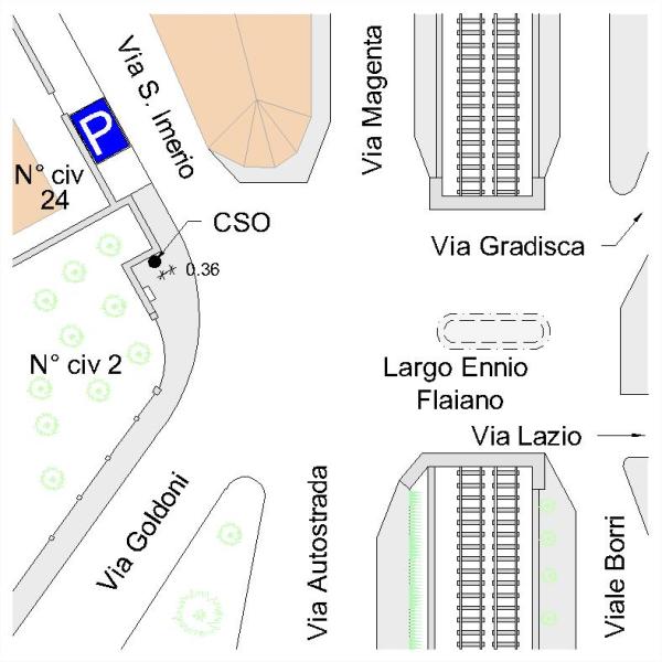 | Contrassegni | [{"simbolo_contrassegno":"B1","materializzazione":"(CSO) – Bullone infisso nella risega del muro di recinzione in c.a. a destra del cancello del giardino tergale del condominio che si affaccia su Via Goldoni n\u00b0 2, al confine della propriet\u00e0 di Via S. Imerio n\u00b0 civico 24."}] |