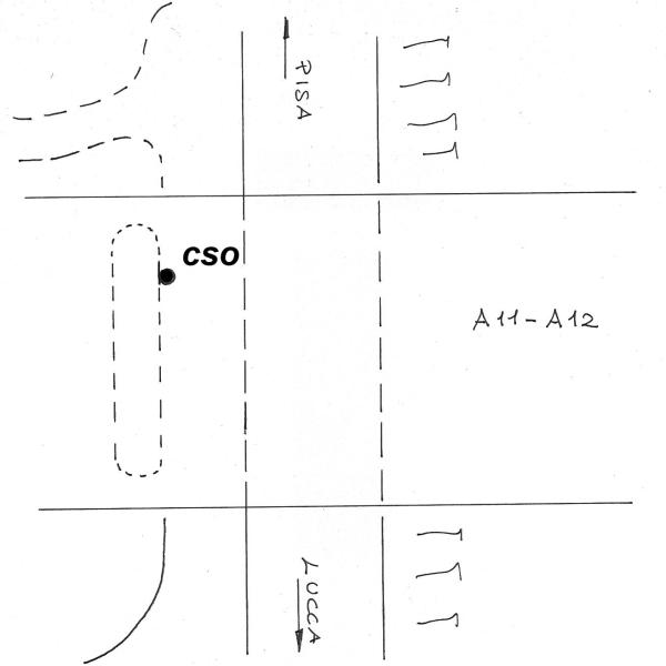 | Contrassegni | [{"simbolo_contrassegno":"B1","materializzazione":"(CSO) – Bullone cementato sulla spalla sinistra del sottopasso, andando verso Pisa."}] |