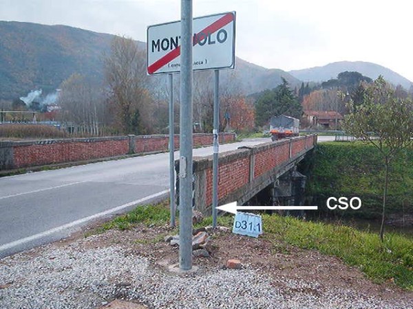 [{"simbolo_contrassegno":"B1","materializzazione":"(CSO) – Bullone alla base della spalletta a valle, riva destra."},{"simbolo_contrassegno":"B2","materializzazione":"(CSO') – Chiodo anonimo infisso sul marciapiede a valle estremo sinistro."},{"simbolo_contrassegno":"B2","materializzazione":"(CSO'') – Chiodo anonimo posto sulla spalletta a valle, estremit\u00e0 riva sinistra."}]