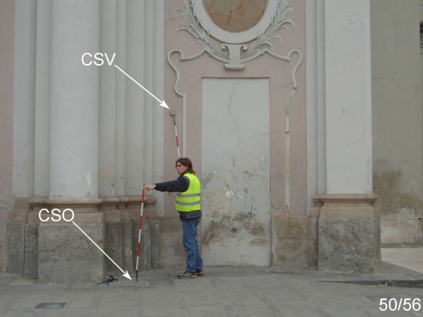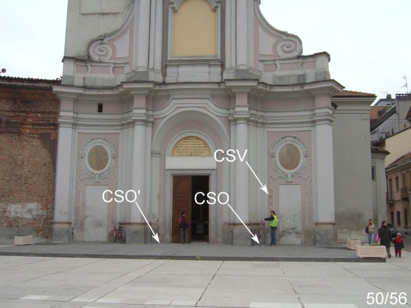 | Contrassegni | [{"simbolo_contrassegno":"P4","materializzazione":"(CSO) – Pozzetto interrato alla base del pilastro a destra dell'entrata principale della Chiesa, oltre lo spigolo destro coperto da chiusino quadrato."},{"simbolo_contrassegno":"B5","materializzazione":"(CSO') – Disco metallico del Catasto infisso sulla soglia della porta principale, a sinistra entrando. (misurabile con mezza sfera)."},{"simbolo_contrassegno":"V1","materializzazione":"(CSV) – Mensola infissa sulla facciata, a destra dell'ingresso."}] |