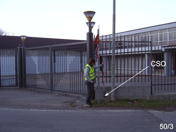 [{"simbolo_contrassegno":"B1","materializzazione":"(CSO) – Bullone infisso alla base del muretto di recinzione dello stabilimento, spigolo a destra del cancello d'accesso."},{"simbolo_contrassegno":"B1","materializzazione":"(CSO') – Bullone infisso in prossimit\u00e0 dello spigolo, a destra della finestra sulla facciata principale dell'edificio della fabbrica."},{"simbolo_contrassegno":"V4","materializzazione":"(CSV) – Piastrina del Catasto infissa in corrispondenza del CSO."}]