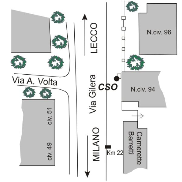 | Contrassegni | [{"simbolo_contrassegno":"B1","materializzazione":"(CSO) – Bullone infisso sul basamento in cls della cabina Telecom sulla ex SS36,al Km 22,015, all'estremit\u00e0 sx della propriet\u00e0 al N\u00b0 civico 94 di Via Gilera."}] |