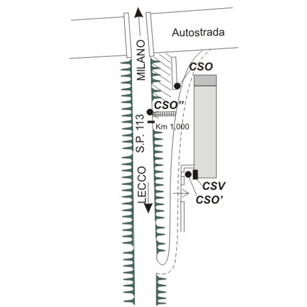 | Contrassegni | [{"simbolo_contrassegno":"B1","materializzazione":"(CSO) – Bullone infisso sul muretto di sostegno alla base della scarpata della SP 113, prospiciente una carrareccia parallela alla provinciale, Km 1,00."},{"simbolo_contrassegno":"P3","materializzazione":"CSO') – Chiusino in ghisa, posto alla base della facciata a circa m. 3 dallo spigolo destro, della Cascina San Paolo, al N\u00b0 civ. 51."},{"simbolo_contrassegno":"V1","materializzazione":"(CSV) – Mensola infissa sulla facciata della suddetta Cascina, presso lo spigolo dx, in prossimit\u00e0 del CSO'."}] |