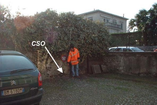[{"simbolo_contrassegno":"P3","materializzazione":"(CSO) – Chiusino in ghisa, posto nel cortile di parcheggio dell'abitazione al N\u00b0 civ. 1, ai piedi del muretto che delimita la propriet\u00e0 vicina."},{"simbolo_contrassegno":"V1","materializzazione":"(CSV) – Mensola infissa sul fianco destro, spigolo di sinistra della suddetta abitazione."}]