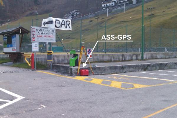 Centrino in acciaio inox del tipo GPS "D", infisso sul cordolo del marciapiede che davanti ai campi da tennis.
