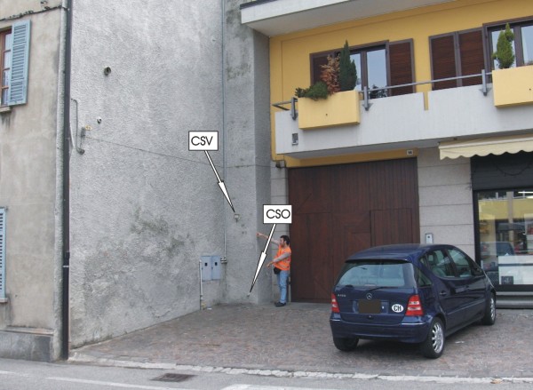 | Contrassegni | [{"simbolo_contrassegno":"B1","materializzazione":"(CSO) – Bullone infisso nella facciata del fabbricato a sinistra dell'ingresso carraio del civico 14."},{"simbolo_contrassegno":"V1","materializzazione":"(CSV) – Mensola murata nella facciata suddetta in corrispondenza del CSO."}] |