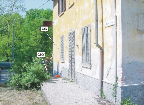 [{"simbolo_contrassegno":"B1","materializzazione":"(CSO) – Bullone infisso sul tombino, spalla lato strada."},{"simbolo_contrassegno":"P3","materializzazione":"(CSO') – Chiusino in ghisa di III\u00b0 categoria stabilizzato in prossimit\u00e0 della facciata, all'altezza della terza finestra."},{"simbolo_contrassegno":"V1","materializzazione":"(CSV) – Mensola infissa sulla facciata suddetta in prossimit\u00e0 dello spigolo sinistro della stessa."}]