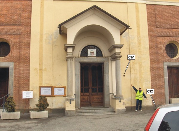 | Contrassegni | [{"simbolo_contrassegno":"P3","materializzazione":"(CSO) – Chiusino in ghisa di III\u00b0 categoria stabilizzato alla base della facciata della chiesa a sinistra della porta laterale destra."},{"simbolo_contrassegno":"V1","materializzazione":"(CSV) – Mensola infissa nella facciata suddetta a destra della porta principale."}] |