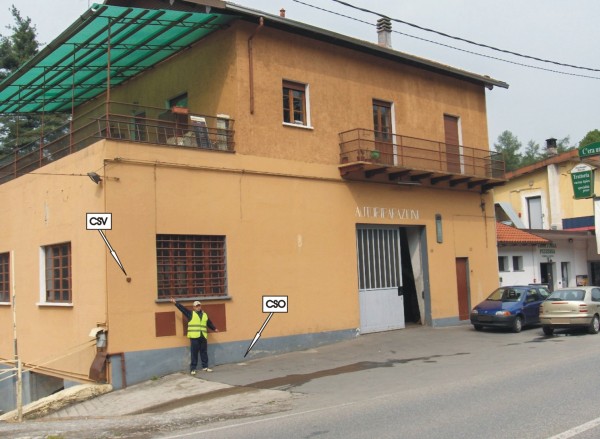 [{"simbolo_contrassegno":"P3","materializzazione":"(CSO) – Chiusino in ghisa di III\u00b0 categoria stabilizzato alla base della facciata a circa 4 m dallo spigolo di sinistra, in corrispondenza dello spigolo destro della finestra, protetto da una mattonella in pietra amovibile. Alto non misurabile."},{"simbolo_contrassegno":"V1","materializzazione":"(CSV) – Mensola infissa sulla facciata, spigolo di sinistra."}]