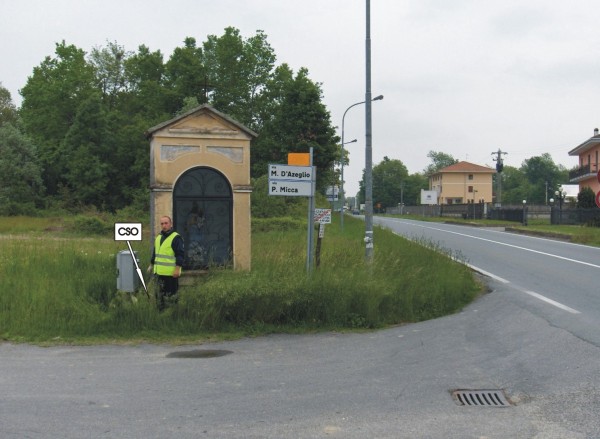 [{"simbolo_contrassegno":"P5","materializzazione":"(CSO) – Pozzetto di IV\u00b0 categoria, protetto da tubo in plastica e chiusino in ghisa, stabilizzato alla base del tabernacolo sul lato sinistro."}]