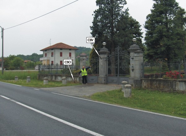 [{"simbolo_contrassegno":"P3","materializzazione":"(CSO) – Chiusino in ghisa di III\u00b0 categoria stabilizzato alla base del primo pilastro sinistro del cancello d'ingresso."},{"simbolo_contrassegno":"V1","materializzazione":"(CSV) – Mensola infissa sul pilastro suddetto."}]