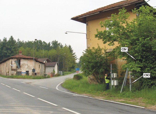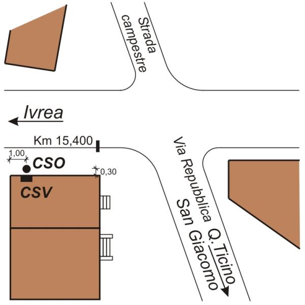 | Contrassegni | [{"simbolo_contrassegno":"P3","materializzazione":"(CSO) – Chiusino in ghisa di III\u00b0 categoria stabilizzato alla base della casa al km 15,400 della statale, prossimo allo spigolo destro. Alto non misurabile."},{"simbolo_contrassegno":"V1","materializzazione":"(CSV) – Mensola infissa sulla facciata suddetta, in corrispondenza del CSO."}] |