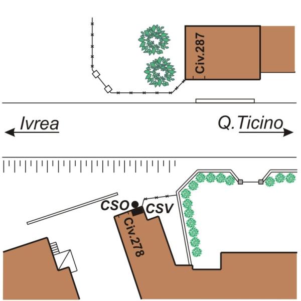 | Contrassegni | [{"simbolo_contrassegno":"P3","materializzazione":"(CSO) – Chiusino in ghisa di III\u00b0 catagoria stabilizzato alla base del fianco sinistro rivolto alla strada statale, prosso lo spigolo di sinistra."},{"simbolo_contrassegno":"V1","materializzazione":"(CSV) – Mensola infissa sul fianco suddetto, in corrispondenza del CSO."}] |