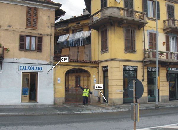 | Contrassegni | [{"simbolo_contrassegno":"P3","materializzazione":"(CSO) – Chiusino in ghisa di III\u00b0 categoria stabilizzato alla base del fronte sinistro, spigolo destro del civico n\u00b0 9."},{"simbolo_contrassegno":"V1","materializzazione":"(CSV) – Mensola infissa sulla facciata al civico 78."}] |