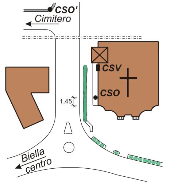 | Contrassegni | [{"simbolo_contrassegno":"P3","materializzazione":"(CSO) – Chiusino in ghisa di III\u00b0 categoria stabilizzato alla base del fronte sinistro, spigolo di destra della chiesa \" S.Pietro Apostolo\". Coperto da lastra bianca amovibile."},{"simbolo_contrassegno":"B6","materializzazione":"(CSO') – Centrino IGM95 infisso nella sommit\u00e0 del muretto di recinzione al parcheggio del cimitero. A circa 300 m dal CSO."},{"simbolo_contrassegno":"V1","materializzazione":"(CSV) – Mensola infissa sulla fiancata laterale sinistra, prossimo alla risega con il campanile."}] |