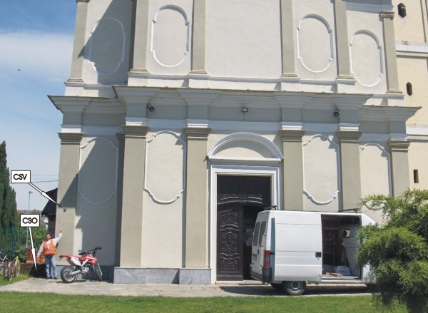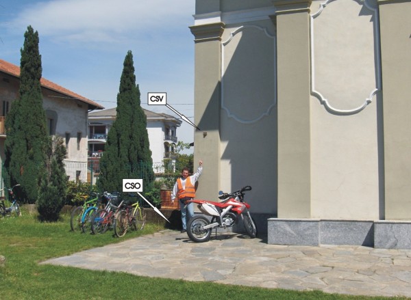 | Contrassegni | [{"simbolo_contrassegno":"P2","materializzazione":"(CSO) – Chisino in ghisa di II\u00b0 categoria stabilizzato alla base della facciata della chiesa, prossimo allo spigolo sinistro."},{"simbolo_contrassegno":"V1","materializzazione":"(CSV) – Mensola infissa sulla facciata della chiesa, in prossimit\u00e0 del CSO."}] |