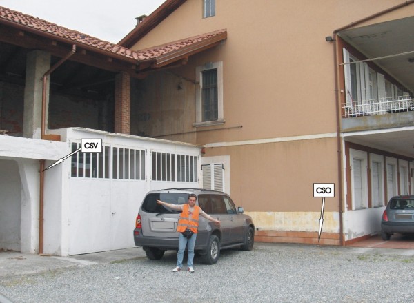 | Contrassegni | [{"simbolo_contrassegno":"B2","materializzazione":"(CSO) – Chiodo anonimo infisso nella pavimentazione presso la parete d'angolo con l'ex granaio."},{"simbolo_contrassegno":"V1","materializzazione":"(CSV) – Mensola infissa sul secondo pilastro della tettoia, a sinistra della casa ; parzialmente coperta da nuove mura e non pi\u00f9 misurabile con la staffa."}] |