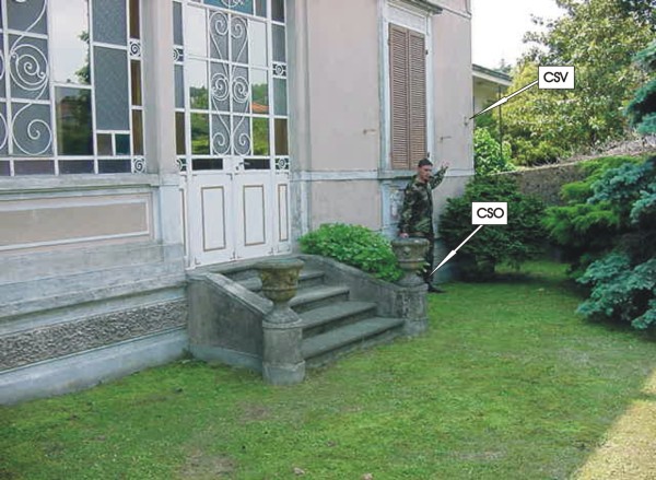 | Contrassegni | [{"simbolo_contrassegno":"B1","materializzazione":"(CSO) – Bullone infisso nel muro di recinzione a destra del cancello con il civico n\u00b048."},{"simbolo_contrassegno":"P3","materializzazione":"CSO') – Chiusino in ghisa di III\u00b0 categoria stabilizzato nel giardino a destra della porta d'ingresso alla casa."},{"simbolo_contrassegno":"V1","materializzazione":"(CSV) – Mensola murata sulla facciata della casa presso lo spigolo destro."}] |