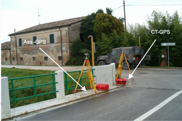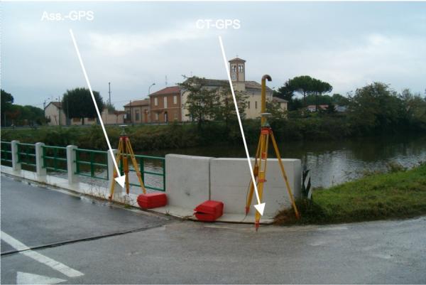 Centrino di tipo GPS di altro Ente infisso sul marciapiede in cemento del ponte, lato a valle, in prossimità della riva destra.
