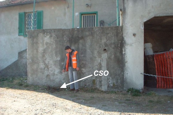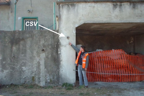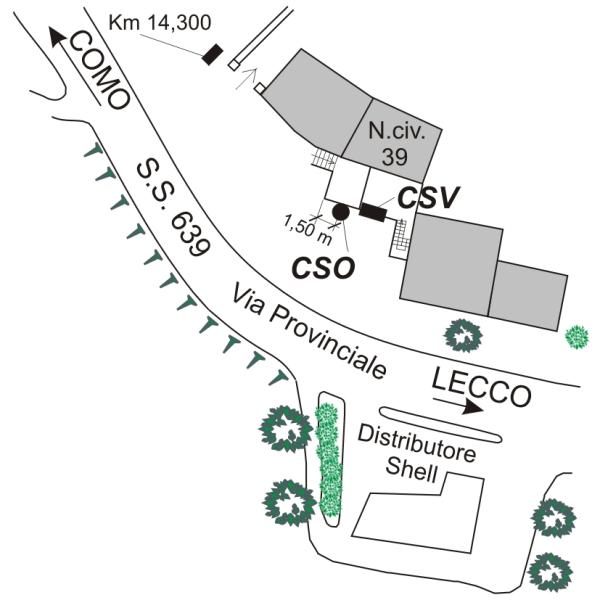 [{"simbolo_contrassegno":"P3","materializzazione":"(CSO) – Chiusino in ghisa posto alla base del muro della terrazza della casa al n. civ. 39 della S.S. 639, a circa 1,5 m dallo spigolo sx della parete adiacente al box, lato strada, a sx direzione Lecco."},{"simbolo_contrassegno":"V1","materializzazione":"(CSV) – Mensola infissa sulla suddetta parete, a destra del CSO sul pilastro sx del box, lato verso la strada statale."}]