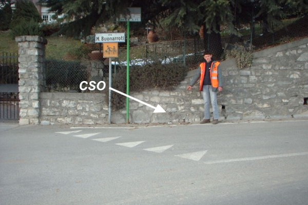 | Contrassegni | [{"simbolo_contrassegno":"B1","materializzazione":"(CSO) – Bullone infisso alla base del muro di cinta della residenza al n. civ. 27 di via M. Buonarroti a destra del cancello d'ingresso, a circa 4 m dal pilastro di dx."}] |