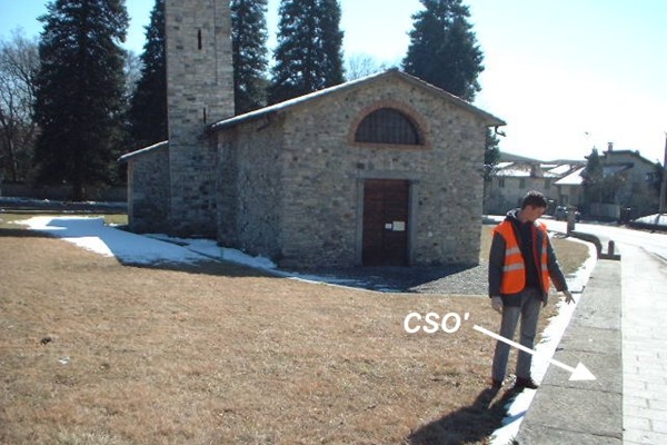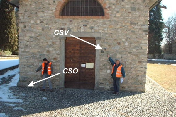| Contrassegni | [{"simbolo_contrassegno":"P3","materializzazione":"(CSO) – Pozzetto posto alla base della facciata della chiesa, presso lo spigolo di sinistra."},{"simbolo_contrassegno":"B6","materializzazione":"(CSO') – Centrino del tipo GPS C infisso sul muretto di recinzione che delimita il prato antistante la chiesa, dal lato prospicente la statale, a circa m. 12,00 dalle scalette di accesso al sagrato."},{"simbolo_contrassegno":"V1","materializzazione":"(CSV) – Mensola infissa sulla stessa facciata della chiesa, a destra della porta d'ingresso."}] |